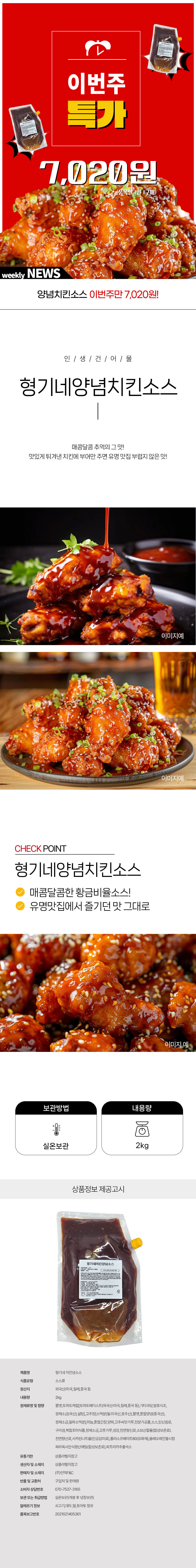 [이번주 특가] 형기네 양념치킨소스 2kg / 1인1구매