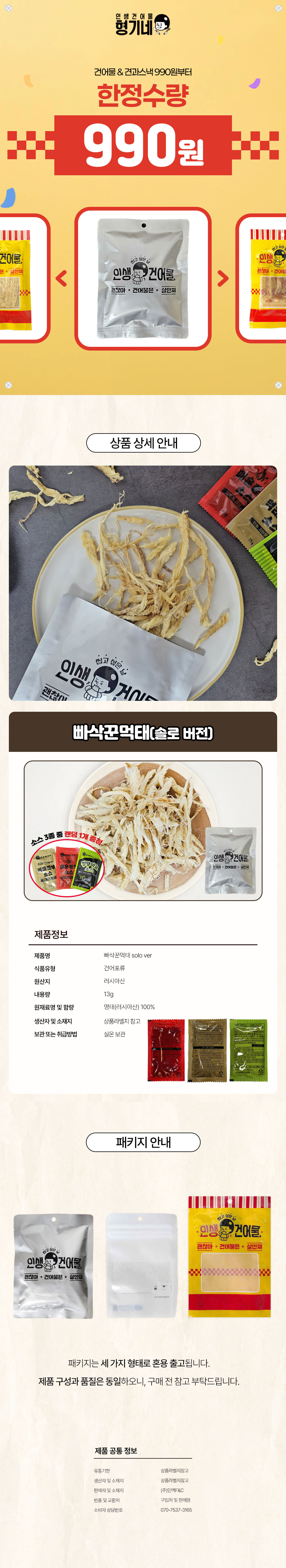 [형기네] 빠삭 꾼 먹태 13g (소스 1개)