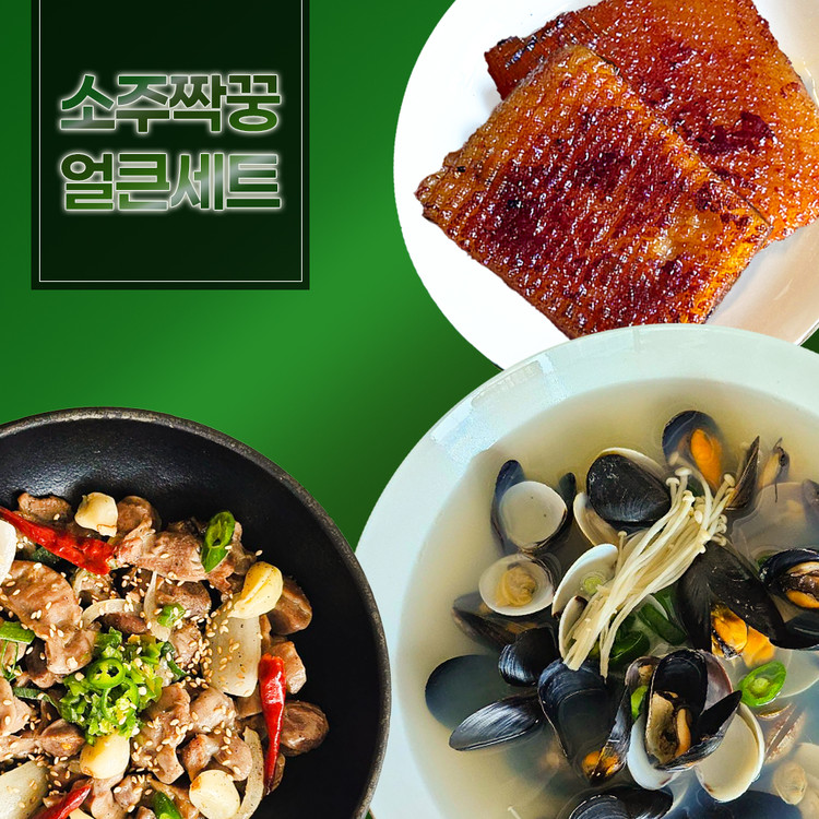 [홈술안주끝판왕] 소주짝꿍 얼큰세트 매콤벌집돼지껍데기200g+통마늘닭근위볶음250g+조개탕650g 무료배송