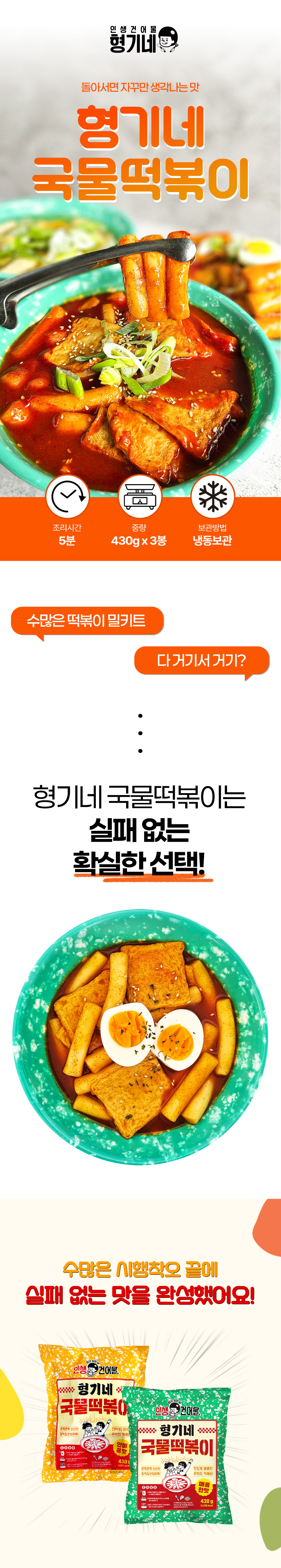 [할인행사] 무료배송 국물떡볶이 430g (매콤한맛+안매운맛) 2+1