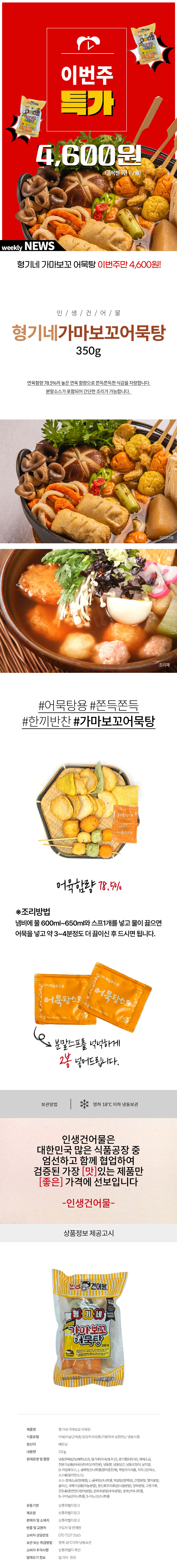 [이번주 특가] 형기네 가마보꼬 어묵탕 350g / 1인1구매