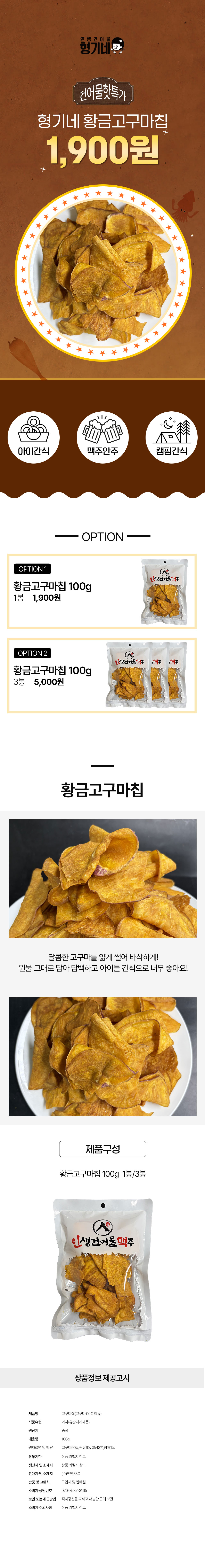 [1900원] 이벤트 | 형기네 황금고구마칩 100g