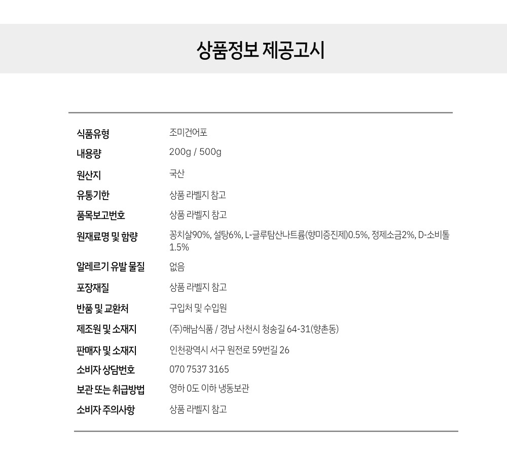 인생 국산 학꽁치포 200g/500g